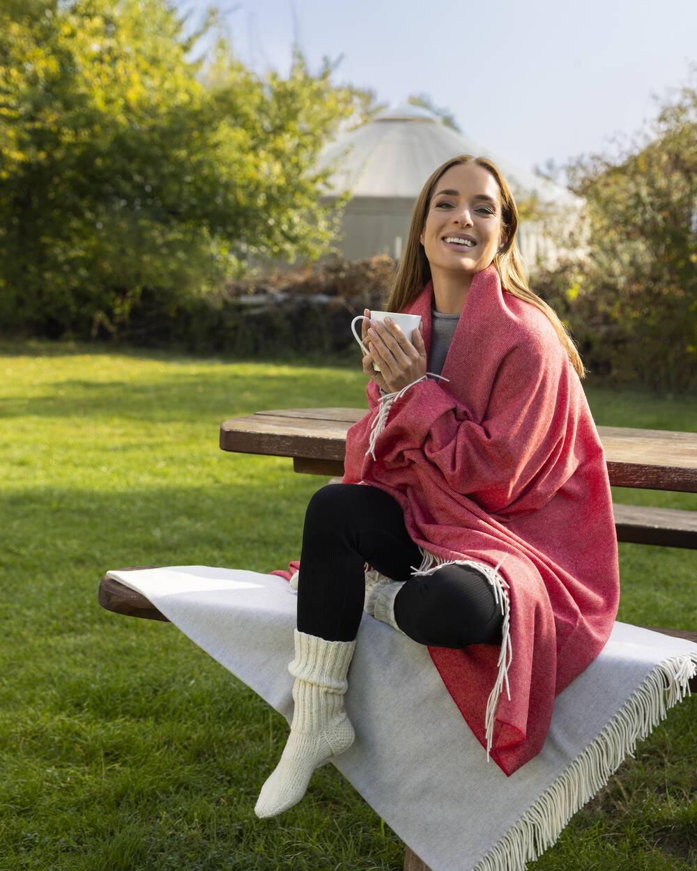 Außerdem ist Wolle ein Allround-Talent für jedes Wetter: Sie ist von Natur aus wasserabweisend, hält schön warm, wenn es kühler wird, und isoliert im Sommer gegen Hitze.